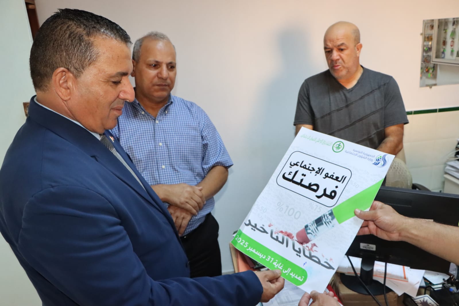 وقد تنقّل السيّد الوالي خلال هذه الزيارة في مختلف مصالح وخلايا إدارة الصندوق الوطني للضمان الاجتماعي، وتابع عن قرب سير الخدمات المقدّمة للمواطنين من حيث السرعة والدقة والتبسيط وجودة المعاملة، كما استمع إلى الإطارات والأعوان حول ظروف عملهم اليومية ومشاغلهم ومقترحاتهم لتطوير الأداء وتحسين جودة الخدمات، وحثّهم على مزيد البذل والعطاء، مؤكّداً على أهمية روح المسؤولية والانضباط في تقديم الخدمة العمومية