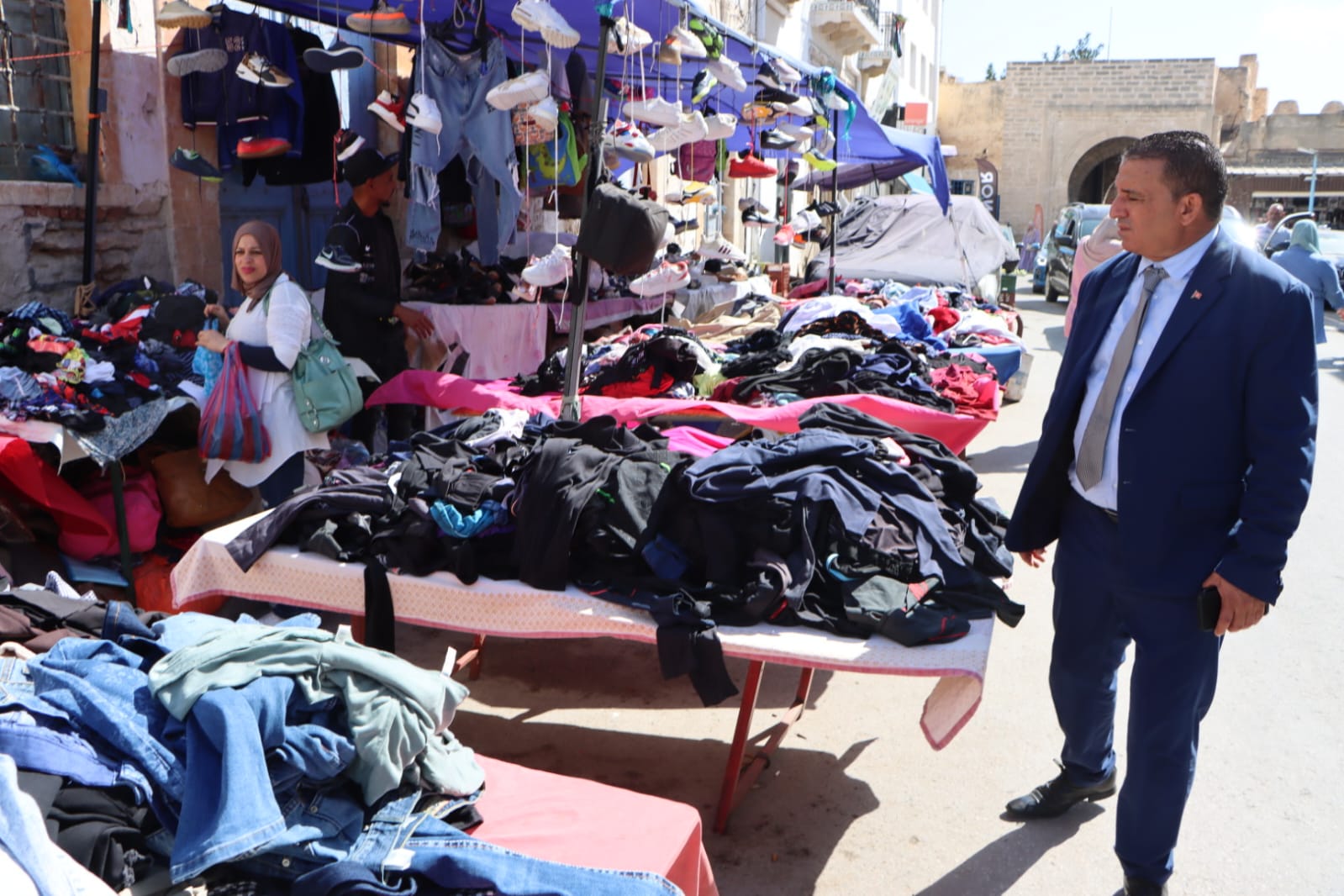 أما في وسط المدينة العتيقة، فقد تركّزت الزيارة الميدانية على معاينة مدى التزام المنتصبين بقرارات إزالة الانتصاب الفوضوي الصادرة يوم أمس، حيث تبيّن تواصل بعض مظاهر الانتصاب العشوائي وغير القانوني على الأرصفة وجزء من الطرقات. وعلى إثر ذلك، أذن السيّد الوالي لمصالح الشرطة البلدية والمصالح الأمنية بالتدخّل الفوري لإزالة الانتصاب المخالف واتّخاذ كافة الإجراءات القانونية والردعية اللازمة، من تحرير محاضر مخالفات إلى بعض عمليات حجز للبضائع والتجهيزات المستعملة في الانتصاب غير المرخّص.