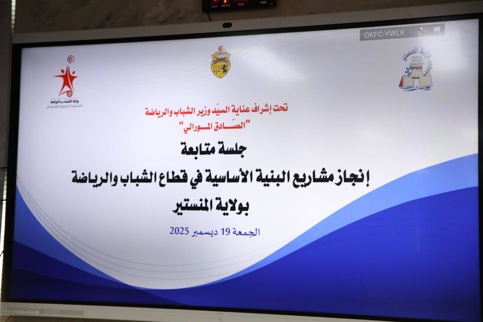 أشرف وزير الشباب والرياضة السيّد الصادق المورالي، صباح اليوم الجمعة 20 ديسمبر 2025، على جلسة عمل بمقرّ الوزارة لمتابعة تنفيذ التوصيات المنبثقة عن زيارته الميدانية إلى ولاية المنستير يوم 18 أكتوبر 2025