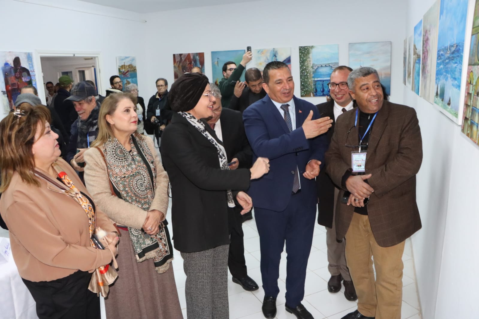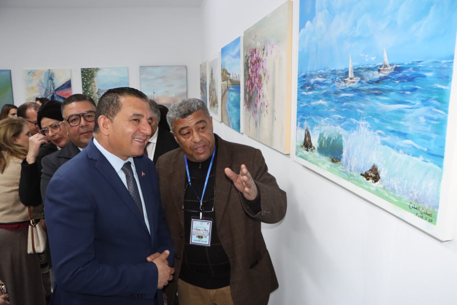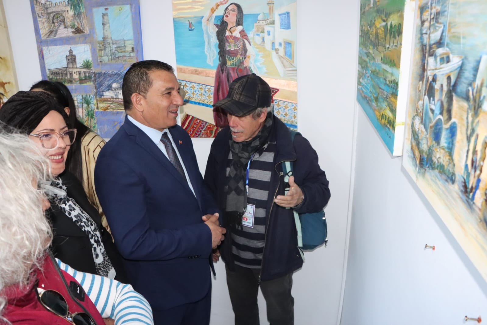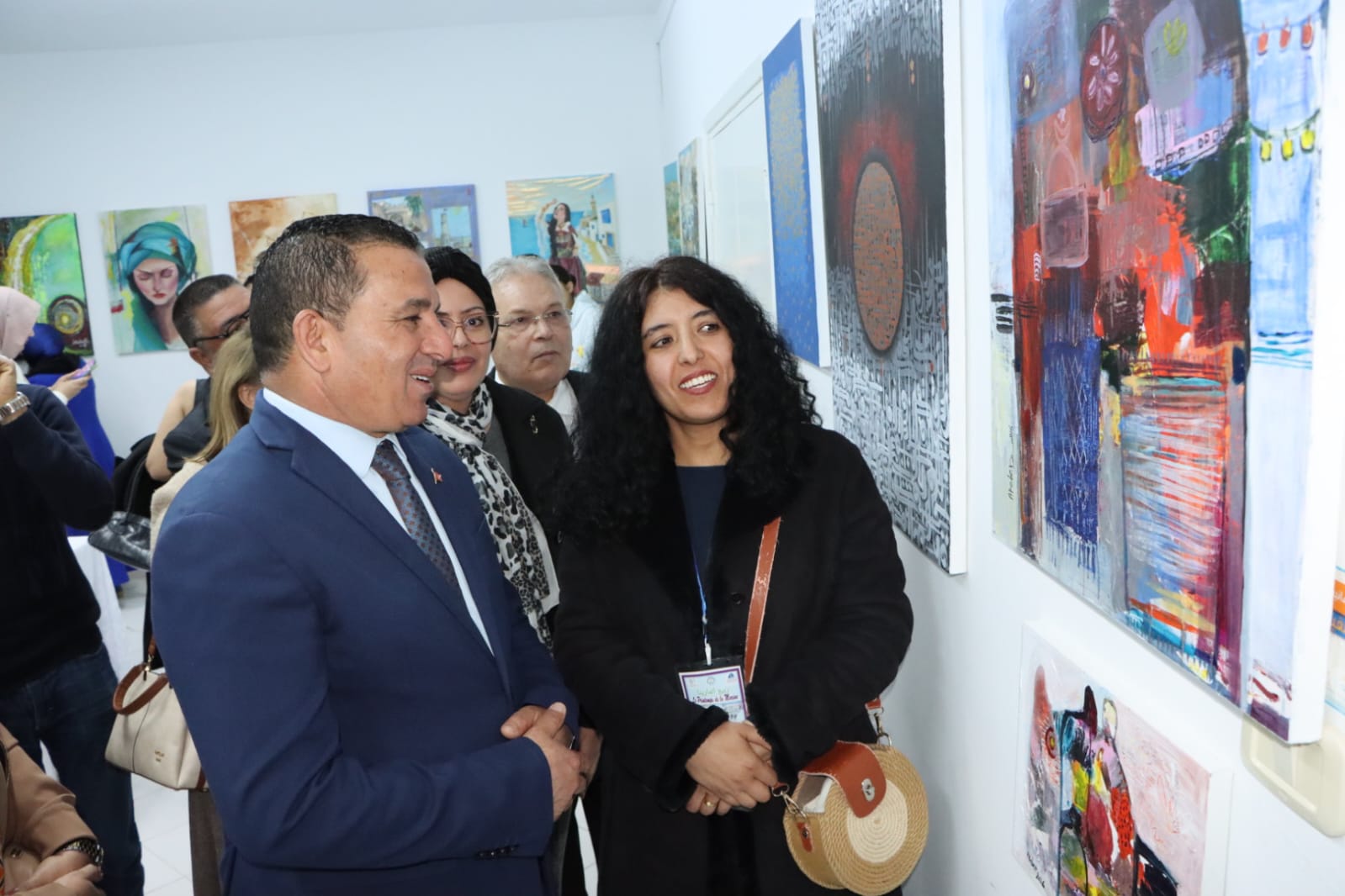 وتنقّل السيّد الوالي بالمناسبة في معرض الفنون التشكيلية الذي ضمّ أعمالًا فنّية متميّزة لفنّانين من تونس ومن دول شقيقة وصديقة، حيث نوّه بالمستوى الإبداعي الراقي للّوحات المعروضة وما تعكسه من حسّ فنّي وجمالي، مثمّنًا مشاركة عدد من الدول الشقيقة والأجنبية لما لذلك من دور في دعم التبادل الثقافي والانفتاح الدولي.