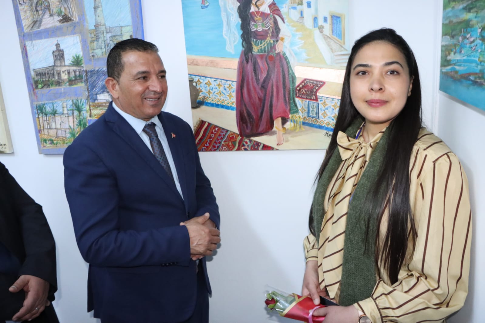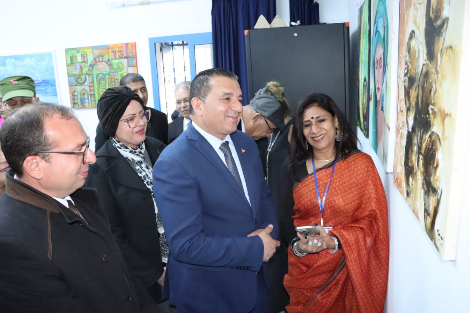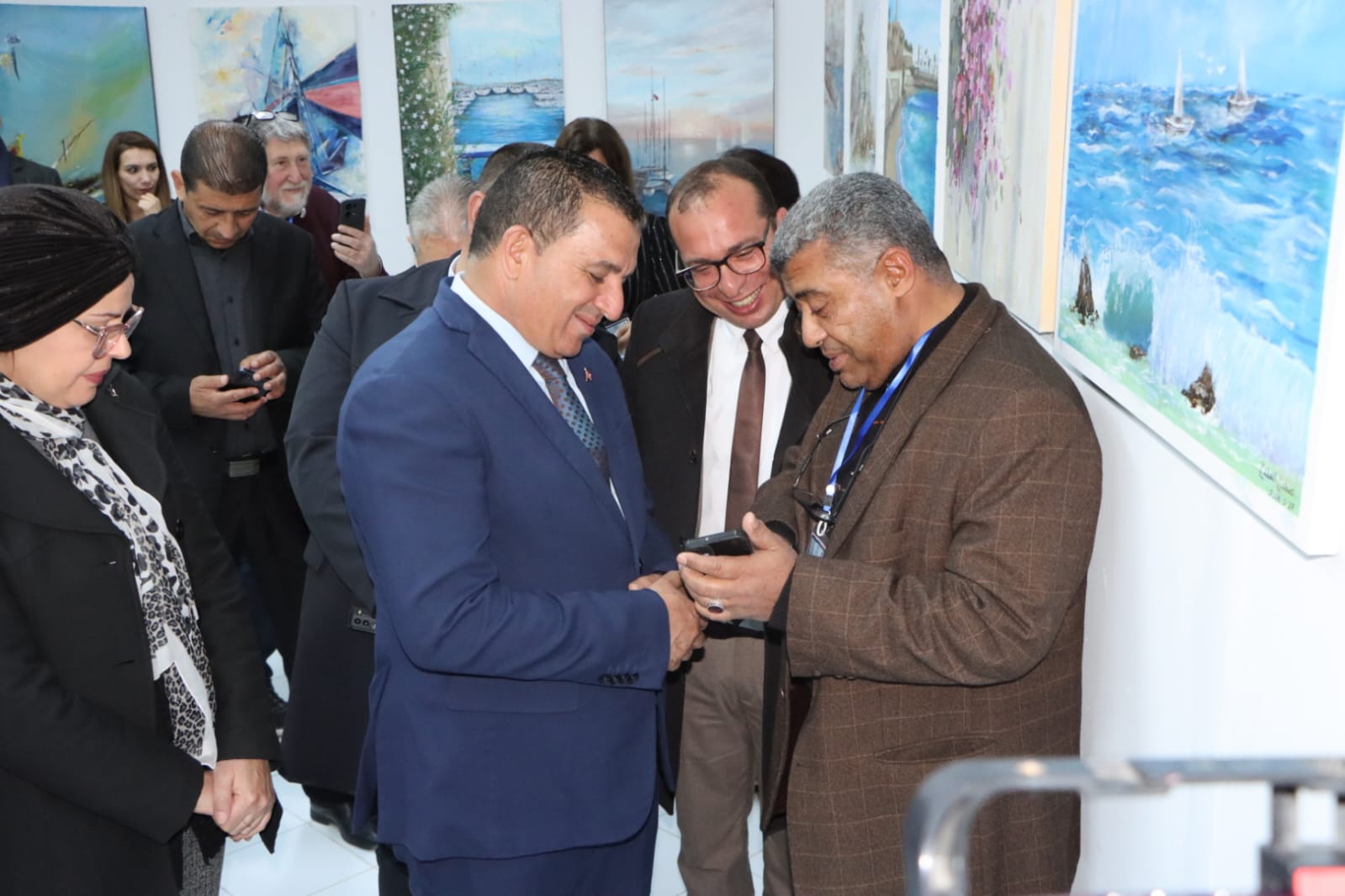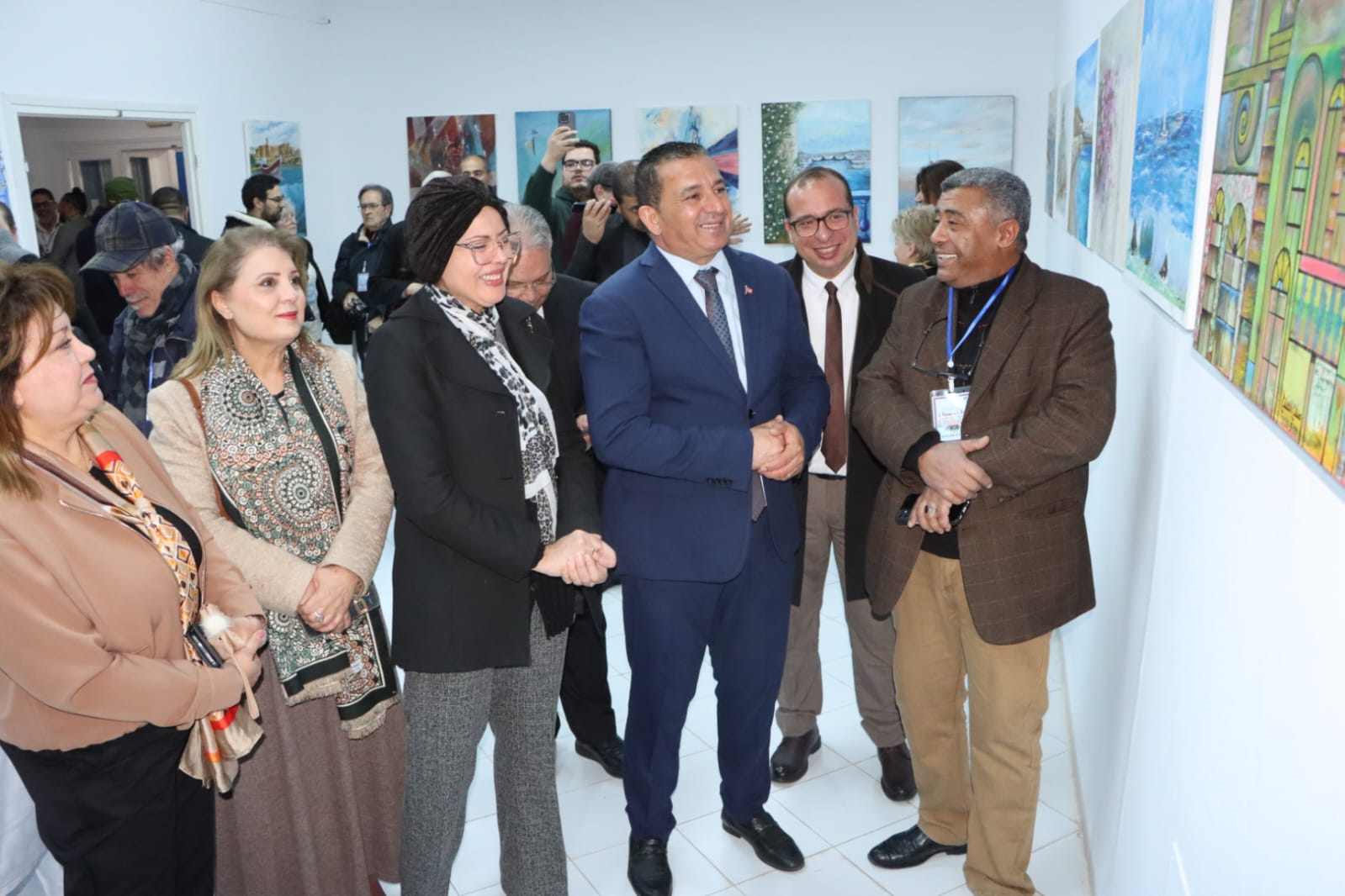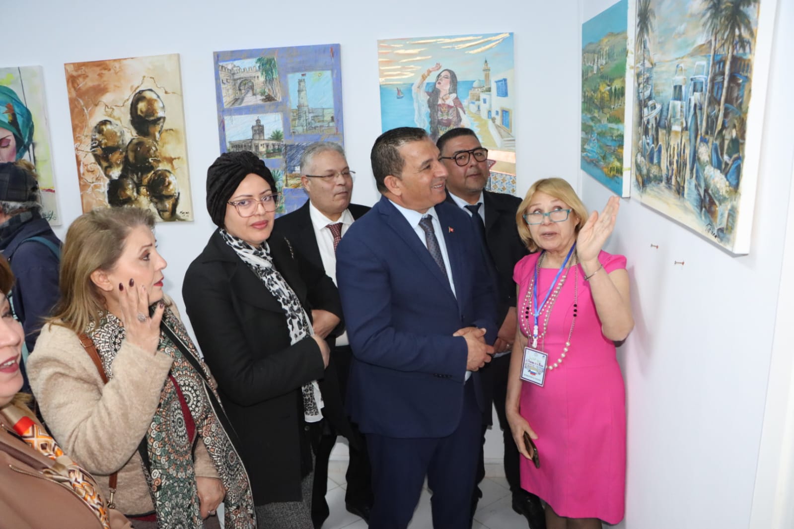 وتنقّل السيّد الوالي بالمناسبة في معرض الفنون التشكيلية الذي ضمّ أعمالًا فنّية متميّزة لفنّانين من تونس ومن دول شقيقة وصديقة، حيث نوّه بالمستوى الإبداعي الراقي للّوحات المعروضة وما تعكسه من حسّ فنّي وجمالي، مثمّنًا مشاركة عدد من الدول الشقيقة والأجنبية لما لذلك من دور في دعم التبادل الثقافي والانفتاح الدولي.