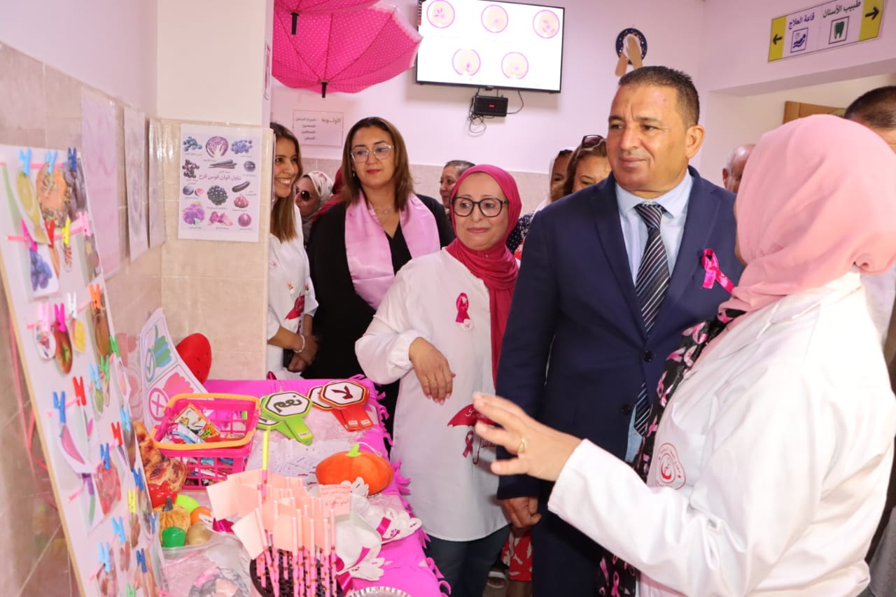 وقد واكب السيّد الوالي خلال هذه الزيارة الميدانية مختلف أنشطة البرنامج التي شملت فحوصات طبية مجانية موجّهة لأخواتنا من النساء والفتيات، وورشات تحسيسية للتعريف بسرطان الثدي وطرق التوقي منه، إلى جانب دورات تدريبية متنوّعة على الفحص الذاتي وورشات مرتبطة بالتغذية السليمة والنشاط البدني والدعم النفسي.