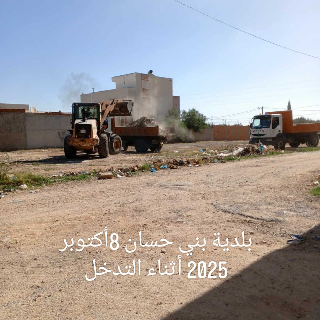 كما احتضنت بلدية بني حسان يوم الأربعاء 08 أكتوبر 2025 حملة نظافة مشتركة بمشاركة بلديات المكنين، زرمدين، جمال، طبلبة، حيث تمّ تسخير شاحنتين قابلتين وآلة تراكس، واستهدفت الحملة عدّة مناطق من المدينة شملت زوايا القطبين والمنازل غير المسكونة ومحيط المدارس ومناطق البناء الجديدة. وقد أفضت إلى رفع حوالي 250 طنًا من الأتربة وفواضل البناء، وهو ما انعكس إيجابيًا على نظافة الأحياء وتحسين البيئة العمرانية.