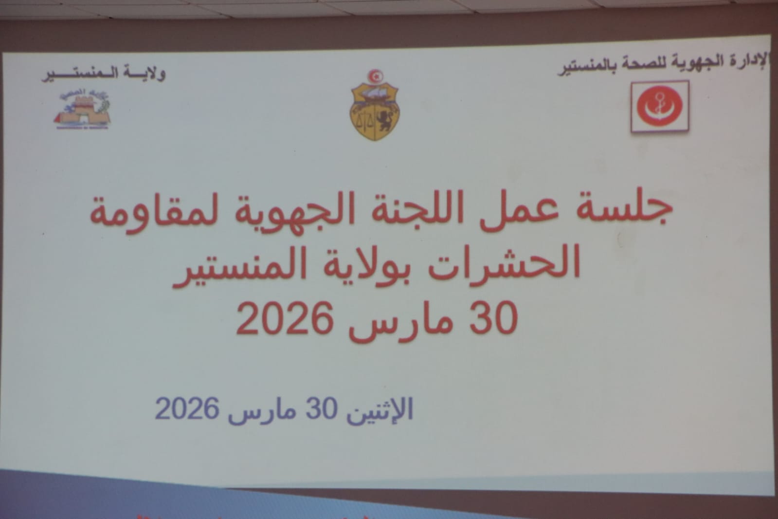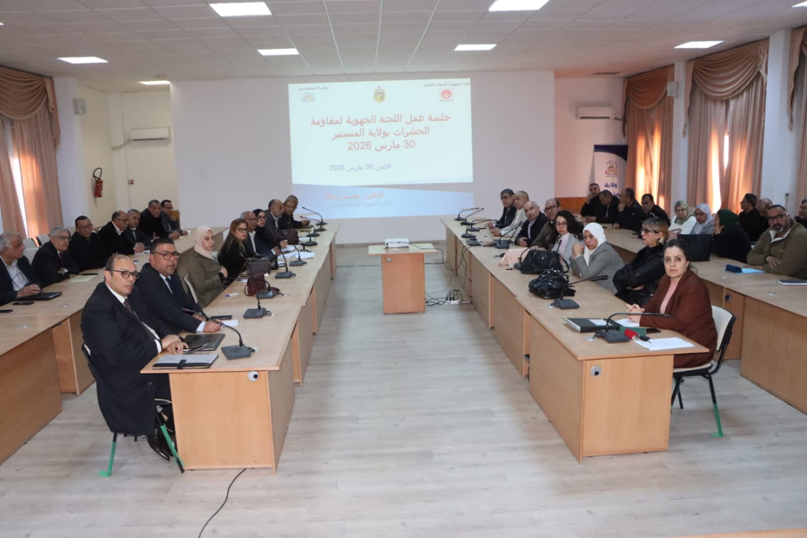 أشرف السيد عيسى موسى، والي المنستير، اليوم الاثنين 30 مارس 2026، على جلسة عمل اللجنة الجهوية لمقاومة الحشرات، مؤكداً في مستهلها أن هذا الاجتماع مهمّا إذ يندررج في اطار تفعيل استراتيجية الاستباق والجاهزية لتأمين الجاهزية لمقاومة الحشرات تزامناً مع حلول فصلي الربيع والصيف.