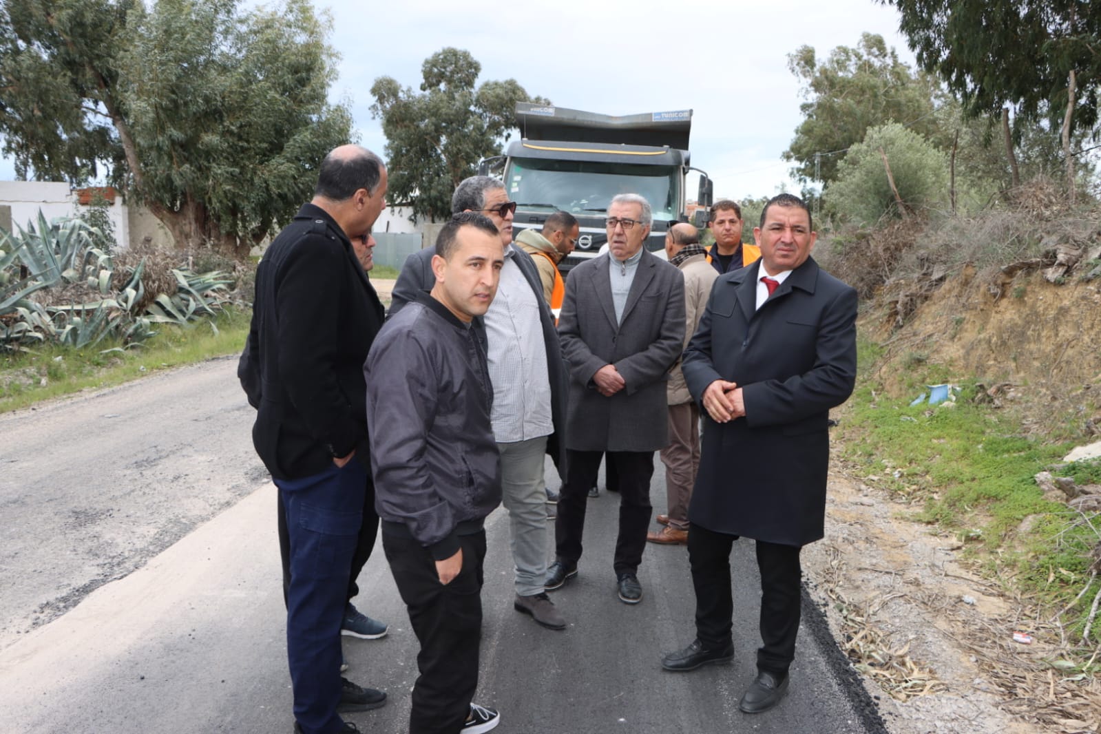 وخلال المعاينة، اطّلع السيّد الوالي على تقدّم الأشغال في مسلك معتمر – الثريّات الذي بلغ حوالي 50%، مؤكّدًا على ضرورة مضاعفة الجهود للتسريع في استكمال المشروع والالتزام بالمواصفات الفنية المعتمدة لضمان جودة الأشغال وديمومتها.
